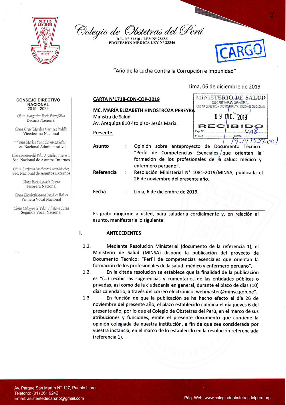 CARTA DEL COP A LA MINISTRA DE SALUD By Colegio De Obstetras Del PerúIn Noticias, PronunciamientosPosted 13 agosto, 20190 Comment(s) Descargar PDF