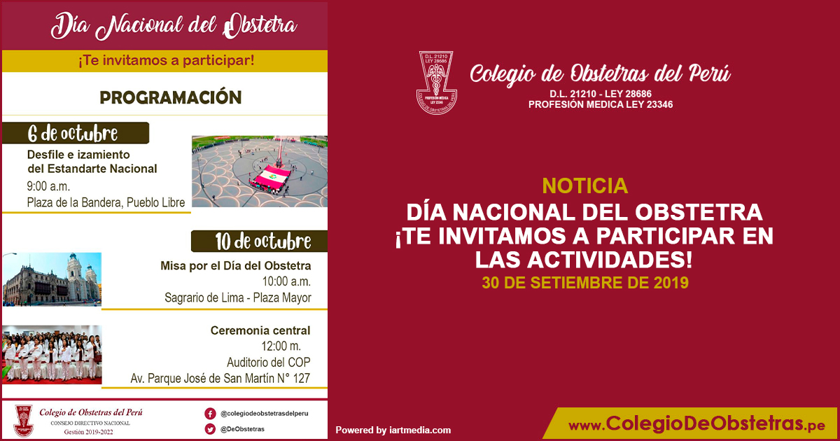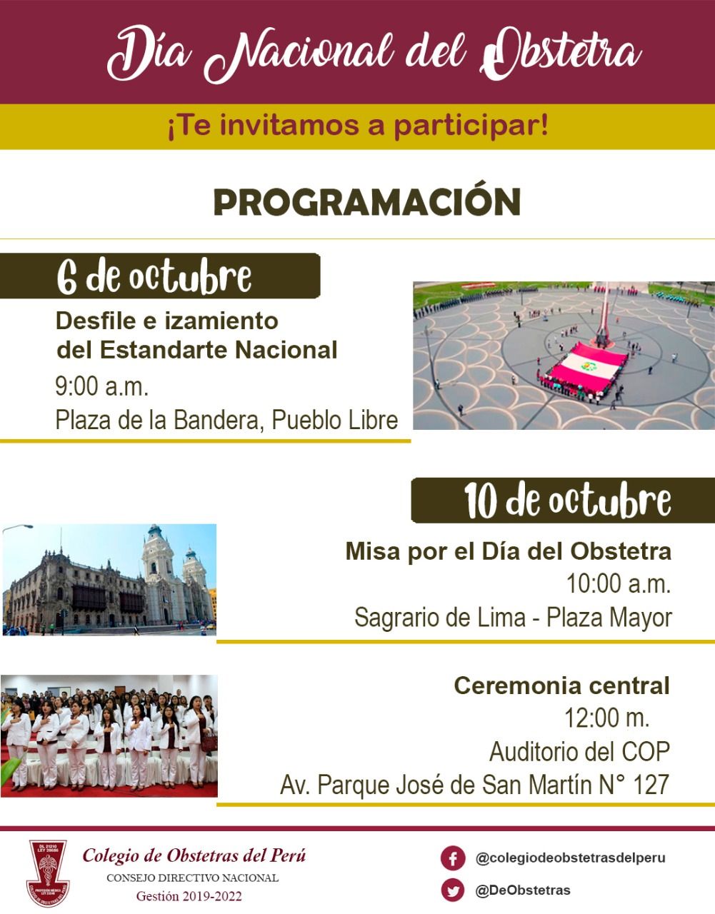 Extendemos una cordial invitación a los Obstetras del Perú, para participar en las actividades programadas por nuestro Día Nacional, que se celebra el 10 de octubre.