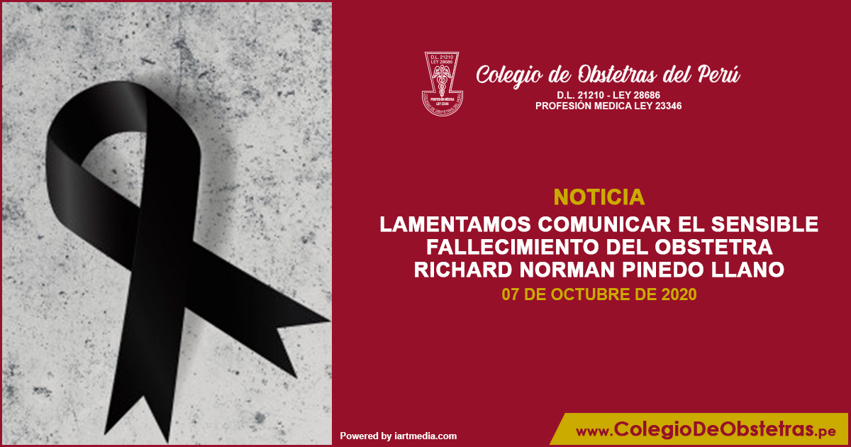 Lamentamos comunicar el sensible fallecimiento del obstetra Richard Norman Pinedo Llanos, quien laboraba en el centro materno infantil San Genaro de Villa, en Chorrillos.