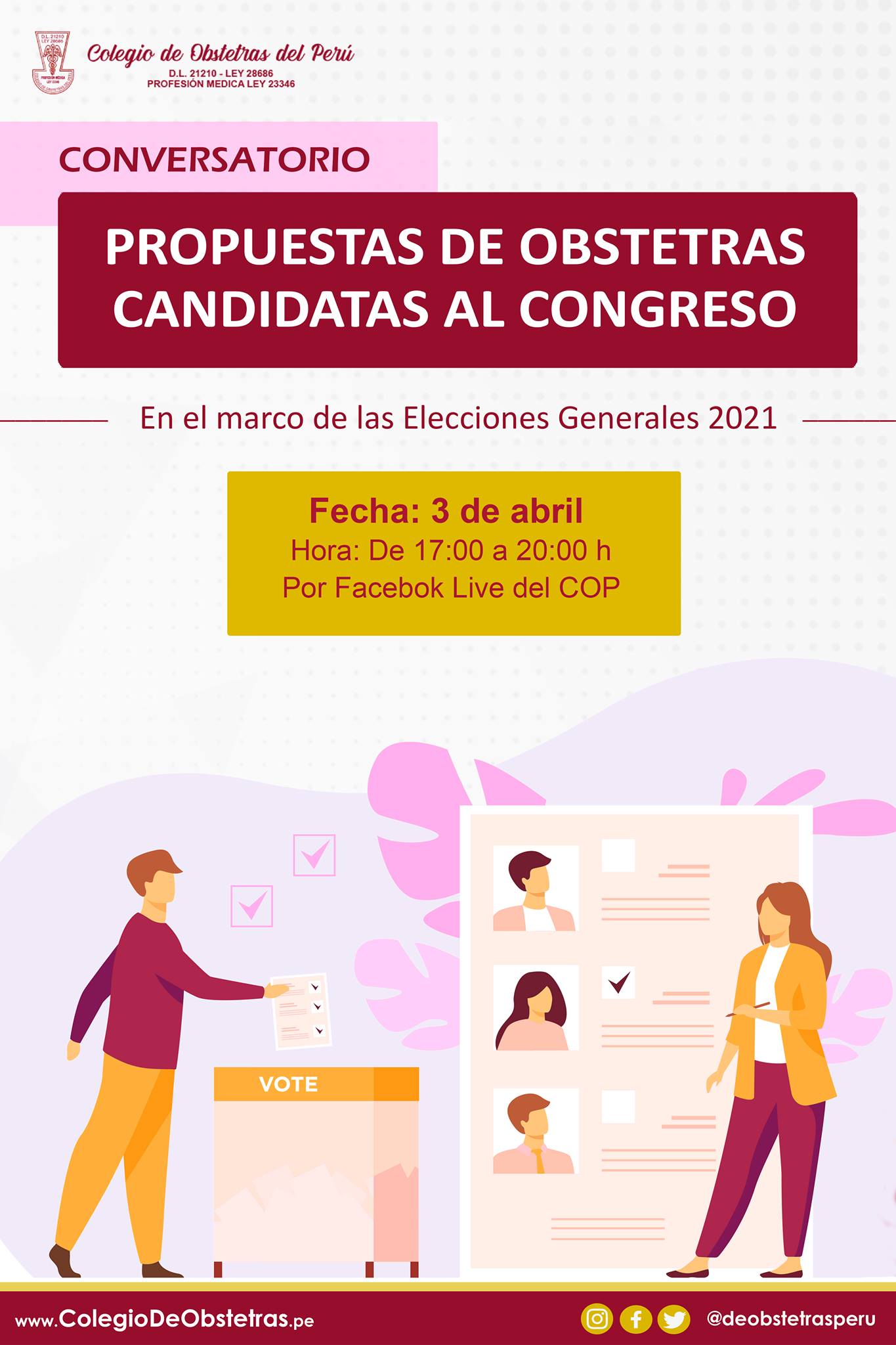 El Colegio de Obstetras del Perú invita a nuestros colegiados y población en general a escuchar las propuestas de las obstetras candidatas que aspiran alcanzar, el próximo 11 de abril, un lugar en el Congreso de la República del Perú.