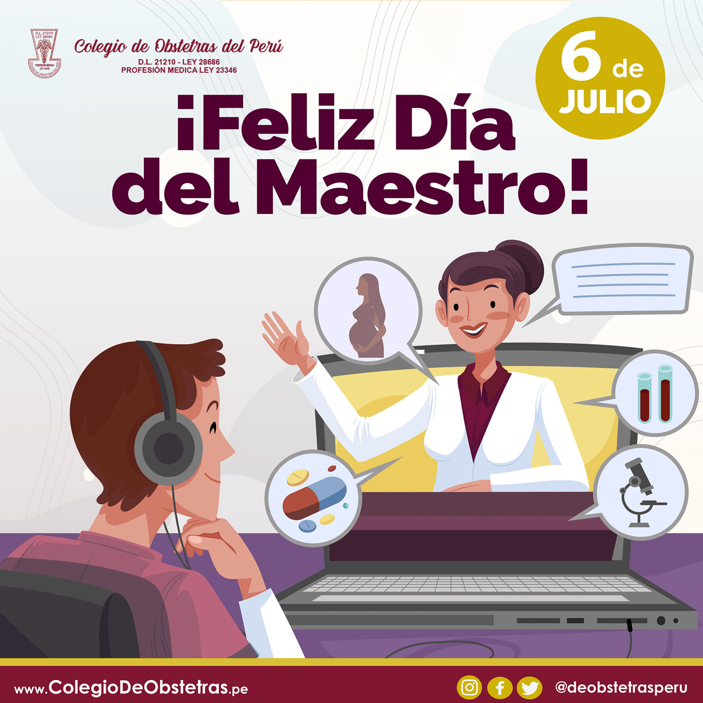 El Colegio de Obstetras del Perú expresa un afectuoso saludo a todos los maestros del Perú, en especial a quienes forjan a futuros profesionales obstetras.