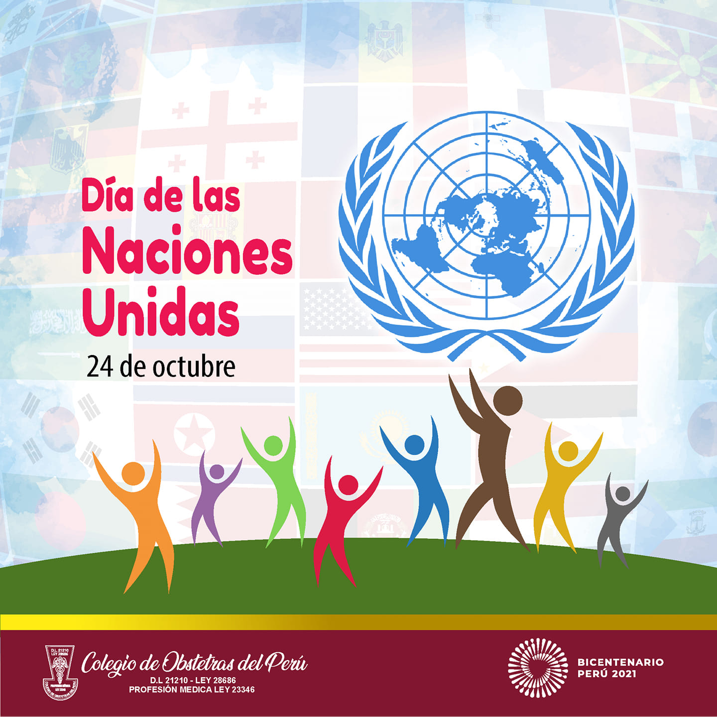 El Colegio de Obstetras del Perú expresa un afectuoso saludo a la Organización de las Naciones Unidas por sus 76 años al servicio de la población mundial.