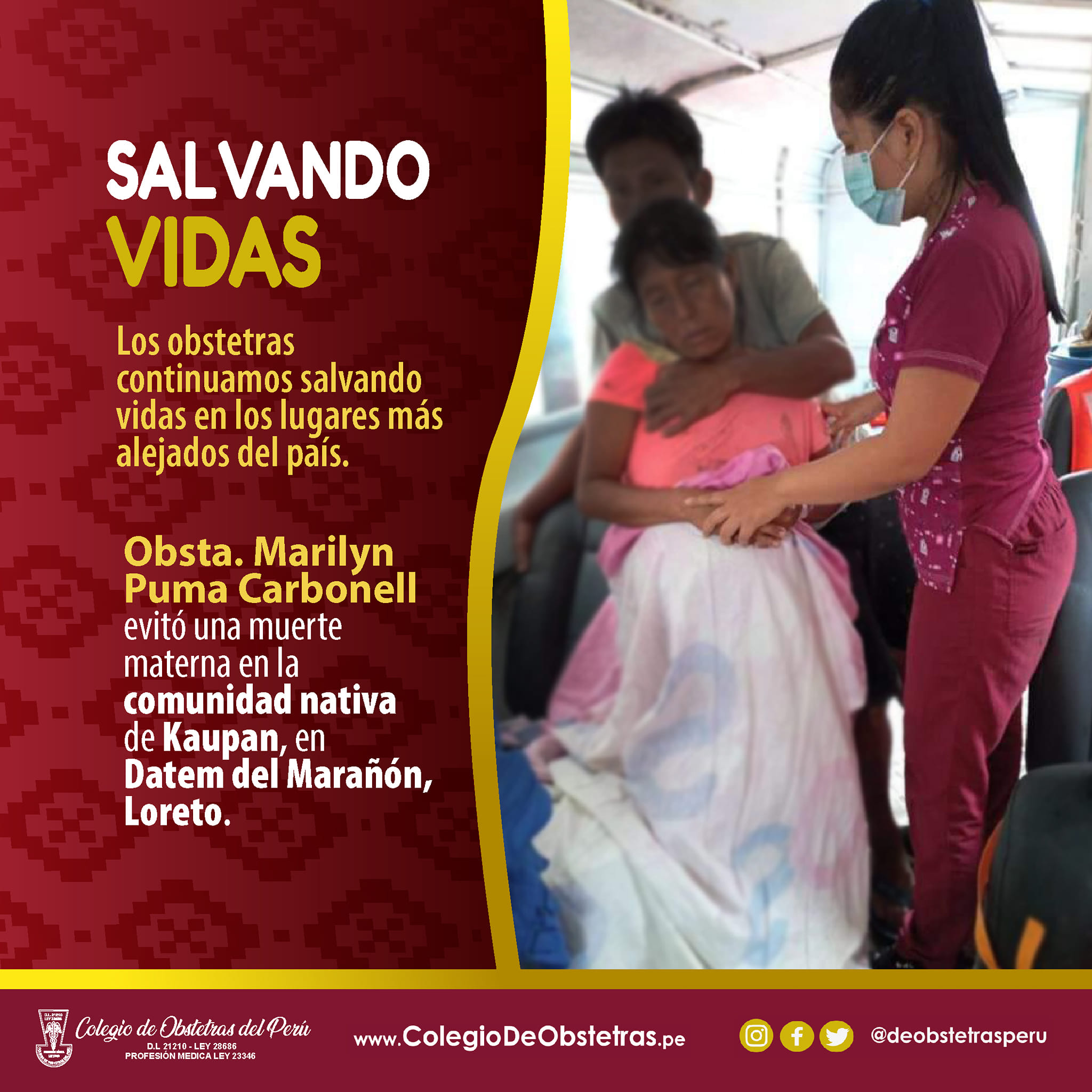En la comunidad nativa de Kaupan, ubicada en la provincia Datem del Marañón, región Loreto, la obstetra Marilyn Puma Carbonell evitó una muerte materna y neonatal, al trasladar a una gestante en periodo expulsivo hacia un establecimiento de salud de mayor complejidad, brindándole la atención adecuada durante el trayecto de aprox. 16 horas por vía fluvial.