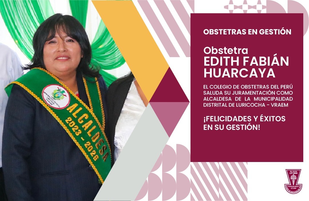 #SaludoInstitucional | La Decana Nacional, Mimi Rojas Silva y el Consejo Directivo Nacional saludan a la Obstetra Edith Fabián Huarcaya, por su juramentación como Alcaldesa de la Municipalidad Distrital de Luricocha – Vraem.