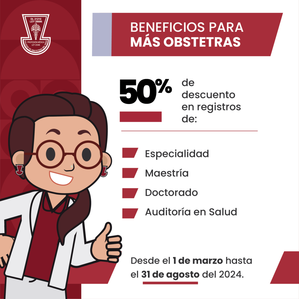 Con Resolución N°001-2024-CN/COP del 17 de febrero del 2024 se aprobó el descuento del 50% del pago de registro de Especialidad, Maestría, Doctorado y Auditoría en Salud.