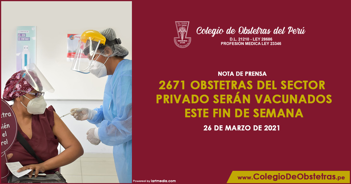 Luego de una larga espera, obstetras que están en la primera línea de lucha contra la COVID-19 en establecimientos de salud del sector privado y en consultorios independientes, serán vacunados a partir de hoy lunes, 22 de marzo, en la Universidad César Vallejo, ubicada en la Av. Alfredo Mendiola...