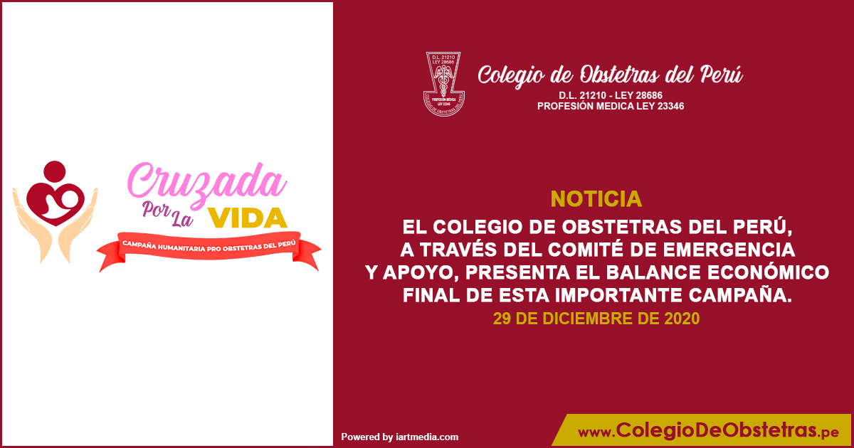Estimados colegas, el Colegio de Obstetras del Perú, a través del Comité de Emergencia y Apoyo, presenta el balance económico final de esta importante campaña. Sus aportes nos permitieron apoyar a obstetras que están en la primera línea de atención durante la emergencia sanitaria por COVID-19. ¡Gracias, Perú!