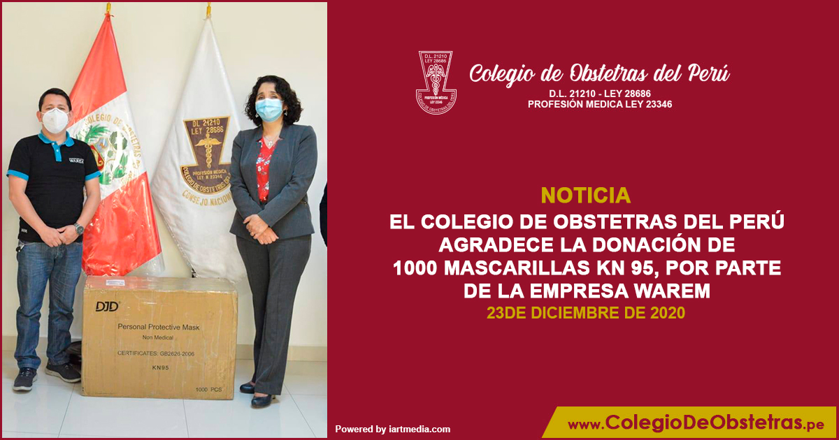 EL COLEGIO DE OBSTETRAS DEL PERÚ AGRADECE LA DONACIÓN DE 1000 MASCARILLAS KN95