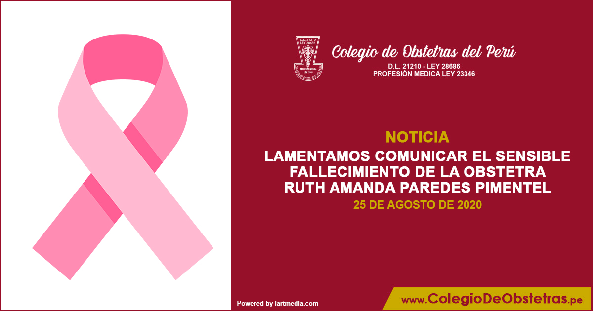 LAMENTAMOS COMUNICAR EL SENSIBLE FALLECIMIENTO DE LA OBSTETRA RUTH AMANDA PAREDES PIMENTEL