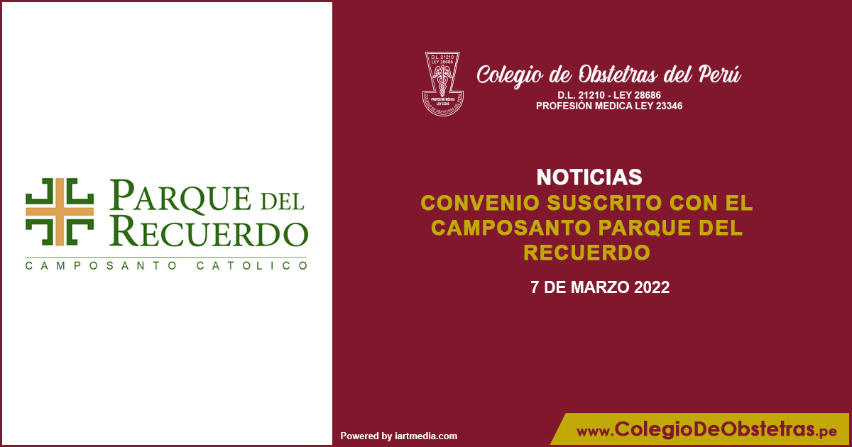 Obstetra, gracias al convenio suscrito con el camposanto Parque del Recuerdo, puedes acceder a descuentos presentando tu carnet de colegiado. Contacto: (01) 618 7130 / convenios@parquedelrecuerdo.org Mayor información: https://colegiodeobstetras.pe/convenioscop/