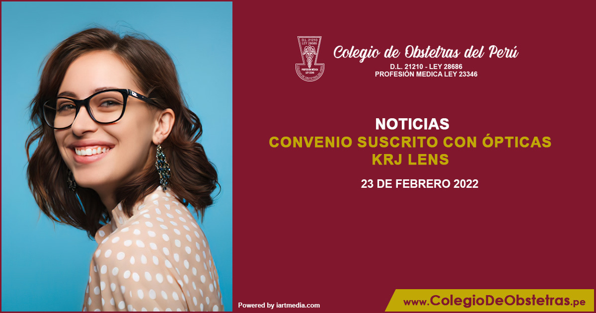 Obstetra, gracias al convenio suscrito con ópticas KRJ LENS, puedes acceder a descuentos presentando tu carnet de colegiado. Contacto: 945-302-028 Mayor información: https://colegiodeobstetras.pe/convenioscop/