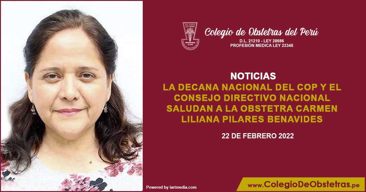 La decana nacional del COP, Margarita Pérez Silva, y el Consejo Directivo Nacional saludan a la obstetra Carmen Liliana Pilares Benavides, por su designación como directora adjunta de la Dirección de Redes Integradas de Salud - Diris Lima Este. ¡Felicitaciones, obstetra! ¡Éxitos en su gestión!