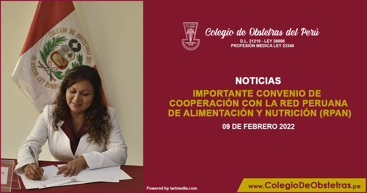 El Colegio de Obstetras del Perú, liderado por la decana Margarita Pérez Silva, suscribió importante convenio de cooperación con la Red Peruana de Alimentación y Nutrición (RPAN), representado por la directora Faviola Jiménez Santos. El convenio tiene como finalidad fortalecer las capacidades de los profesionales obstetras en las áreas de...