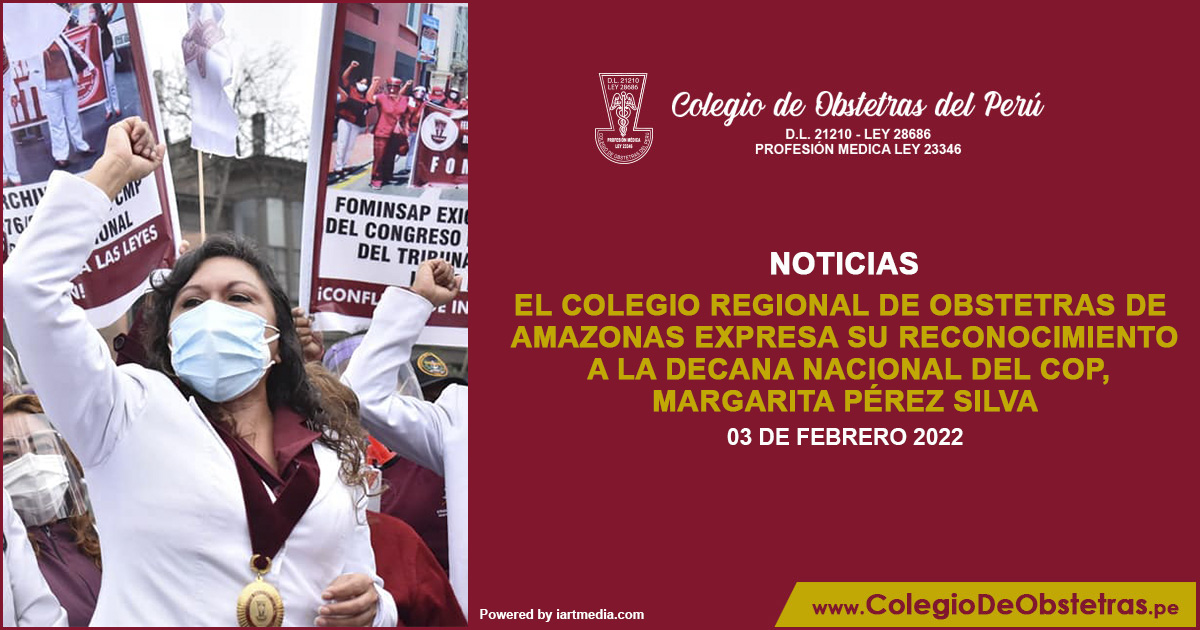 El Colegio Regional de Obstetras de Amazonas expresa su reconocimiento público a la trayectoria profesional de la decana nacional del COP, Margarita Pérez Silva. La decana reafirma su compromiso de trabajo y lucha por la defensa de los derechos laborales y el desarrollo de la profesión de obstetricia.