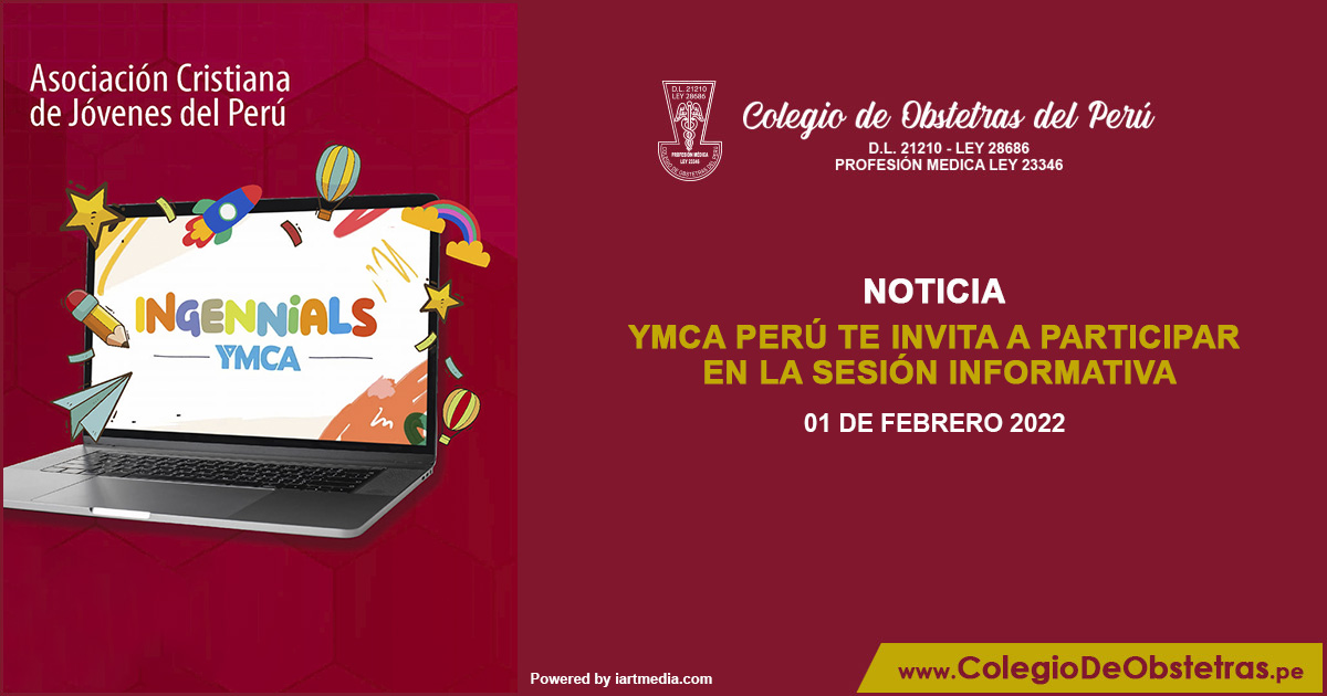 Obstetra, la asociación YMCA Perú te invita a participar en la sesión informativa sobre el programa Ingennials. Zoom: https://bit.ly/3GlAwoZ 1 de febrero | 7 p.m. Ofrece 50% de descuento para obstetras colegiados. Mayor información: https://colegiodeobstetras.pe/convenioscop/