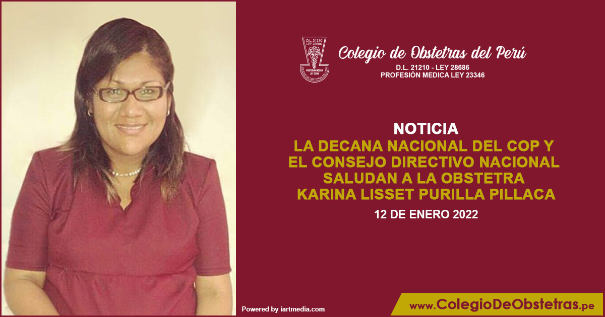 La decana nacional del COP y el Consejo Directivo Nacional saludan a la obstetra Karina Lisset Purilla Pillaca