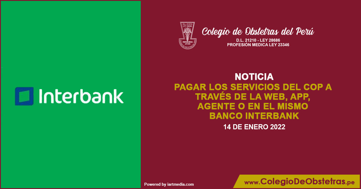 Obstetra, ahora es más fácil y rápido pagar los servicios del COP a través de la web, APP, agente o en el mismo banco Interbank. Conoce más en https://bit.ly/3K91PGl RECUERDA: Antes de realizar algún pago, revisa nuestro tarifario https://bit.ly/3fvT8aE Una vez realizado el pago, envía el voucher: tesoreria.nacional@colegiodeobstetras.pe ...