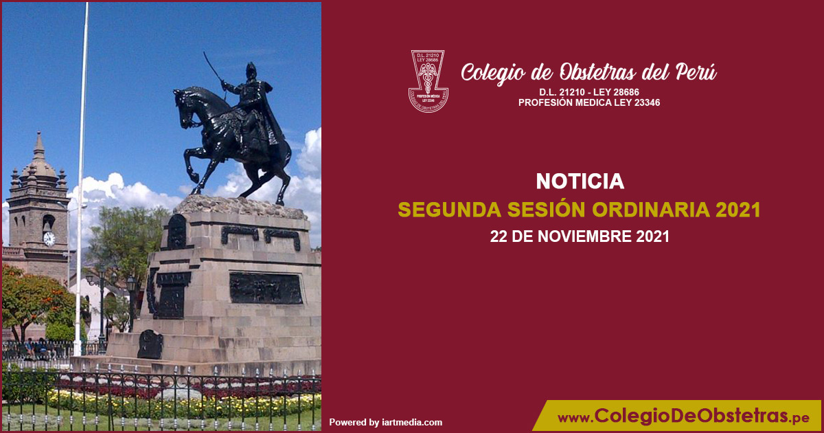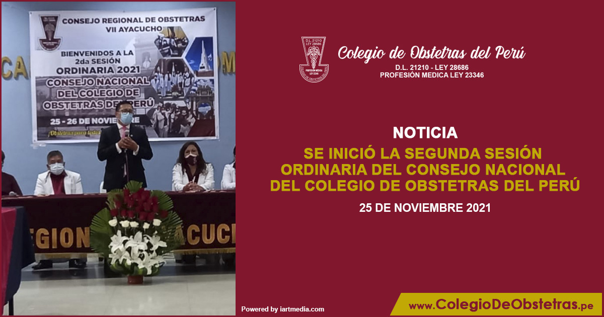 El 25 y 26 de noviembre, el Consejo Nacional del Colegio de Obstetras del Perú realizará la Segunda Sesión Ordinaria 2021. Se abordarán temas de interés para la defensa y el desarrollo de la profesión.