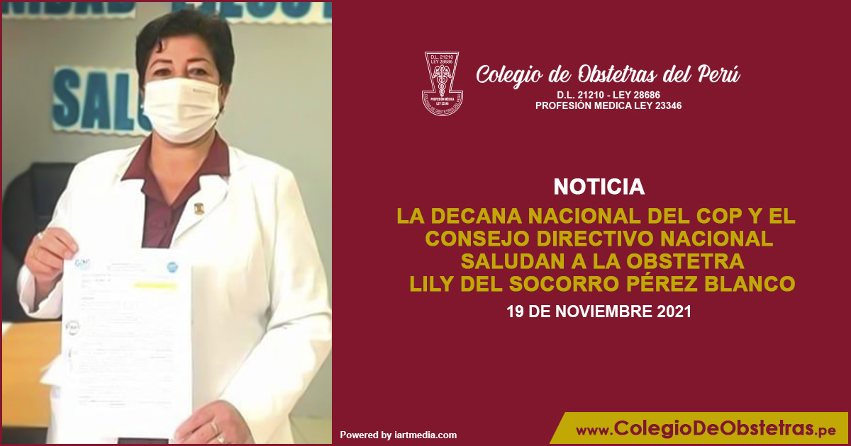 La decana nacional del COP, Margarita Pérez Silva, y el Consejo Directivo Nacional saludan a la obstetra Lily del Socorro Pérez Blanco, por su designación como directora general de la Unidad Ejecutora de Salud Hualgayoc - Bambamarca, en la región Cajamarca. ¡Felicitaciones, obstetra! ¡Éxitos en su gestión!