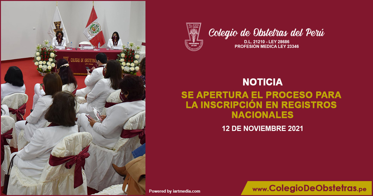 Se apertura el proceso para la inscripción en los siguientes registros: Registro Nacional de Obstetras con Diplomado en Auditoría en Salud (Renodas). Registro Nacional de Especialistas (Renoe). Registro Nacional de Maestría (Renoma). Registro Nacional de Doctorado (Renodo). Mayor información: (01) 261 9242, con atención en Segunda Vocalía Nacional. asistente.svncop2@gmail.com