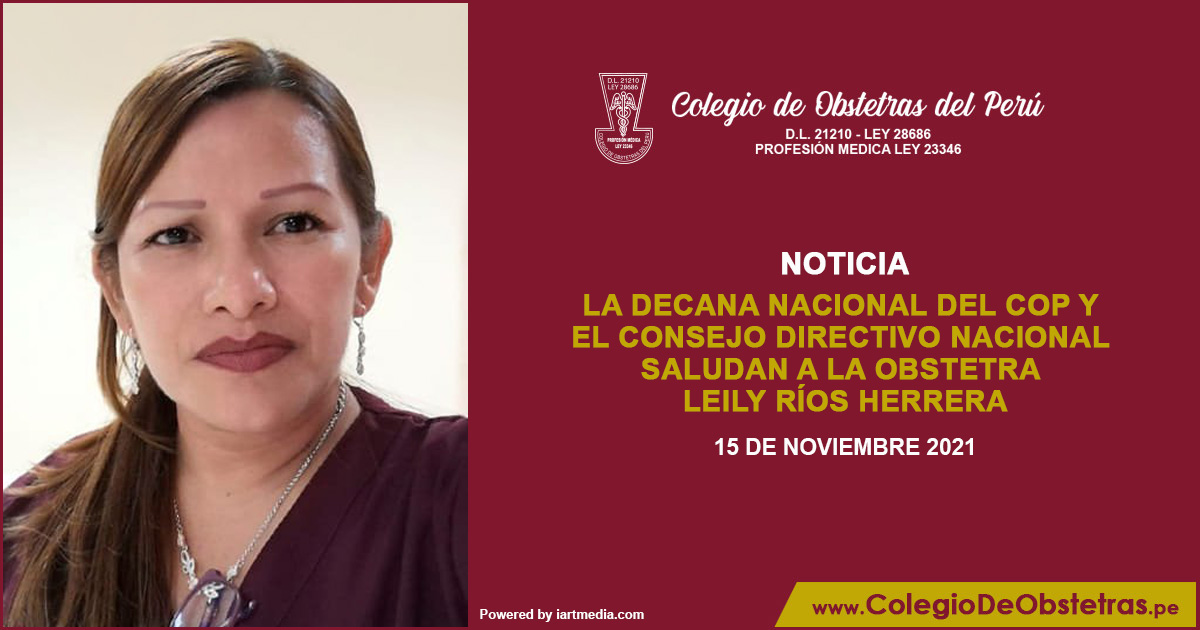 La decana nacional del COP y el Consejo Directivo Nacional saludan a la obstetra Leily Ríos Herrera