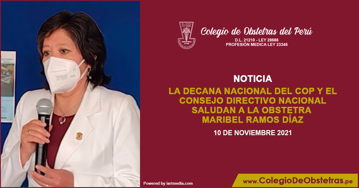 La decana nacional del COP y el Consejo Directivo Nacional saludan a la obstetra Maribel Ramos Díaz