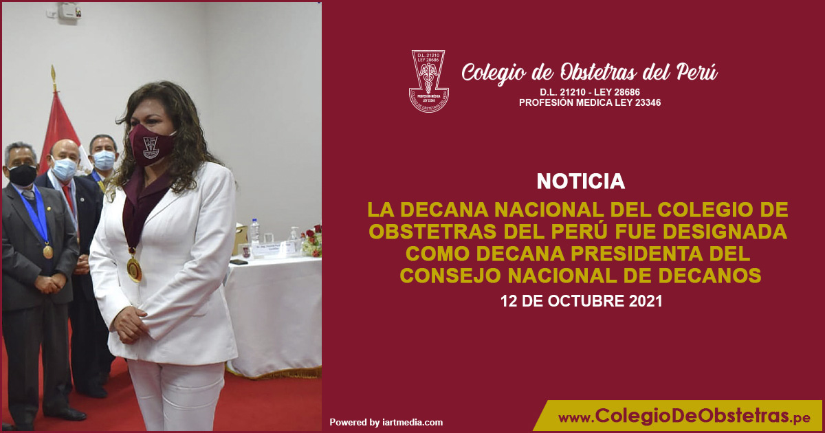 La decana nacional del Colegio de Obstetras del Perú fue designada como decana presidenta del Consejo Nacional de Decanos