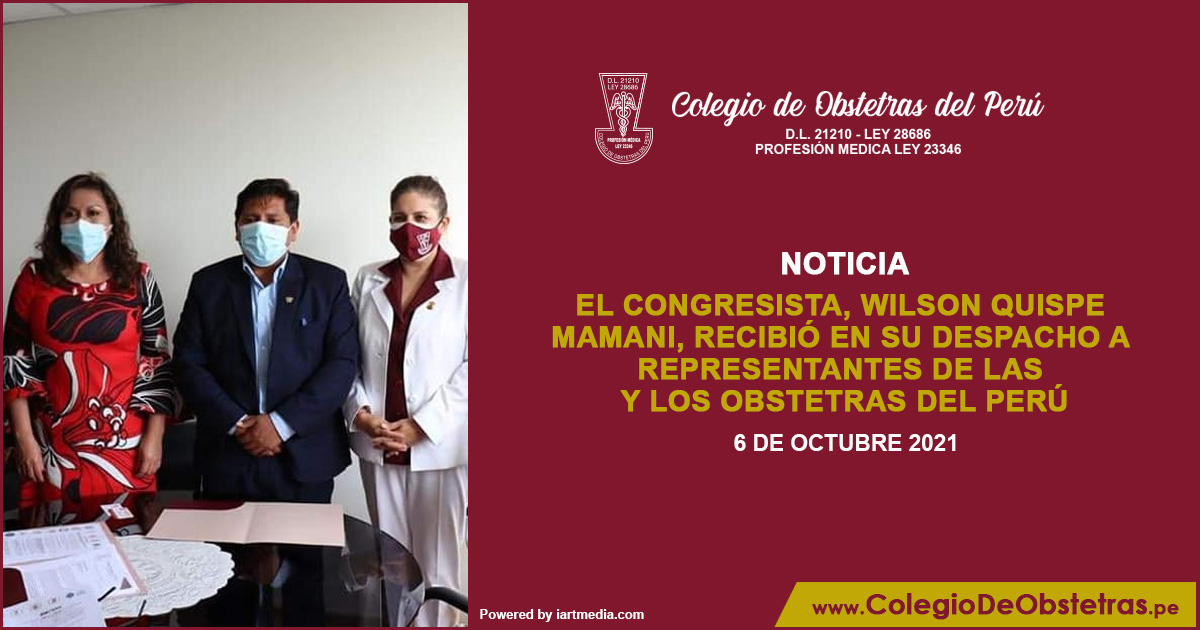 El congresista de la República, Wilson Quispe Mamani, recibió en su despacho a representantes de las y los obstetras del Perú con el fin de buscar solución a sus justas demandas, entre ellas, el cumplimiento de la tercera y cuarta escala salarial, así como el rechazo al proyecto legislativo que...