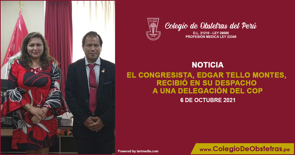 El congresista de la República, Edgar Tello Montes, recibió en su despacho a una delegación del Colegio de Obstetras del Perú, liderada por la decana Margarita Pérez Silva, con el fin de dialogar sobre el dictamen del PL N° 07965 que ha sido desarchivado. La decana explicó que esta iniciativa...