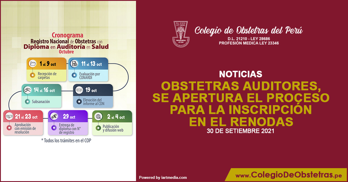 Obstetras auditores, se apertura el proceso para la inscripción en el RENODAS