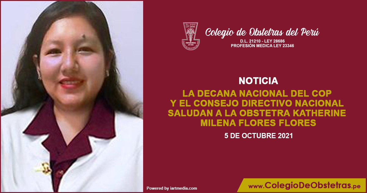La decana nacional del COP, Margarita Pérez Silva, y el Consejo Directivo Nacional saludan a la obstetra Katherine Milena Flores Flores, por su designación como directora de Atención Integral de la Red de Salud Huarochirí, en la región Lima. ¡Felicitaciones, obstetra Katherine! ¡Éxitos en su gestión!