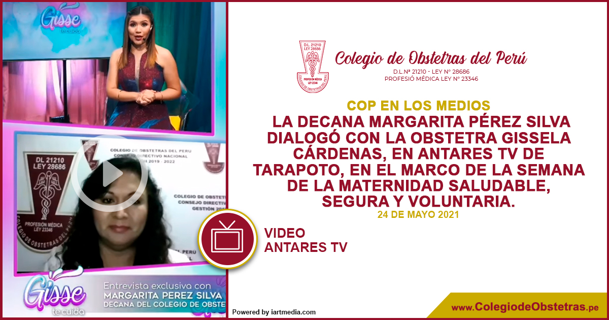 La decana Margarita Pérez Silva dialogó con la obstetra Gissela Cárdenas, en Antares TV de Tarapoto, en el marco de la Semana de la Maternidad Saludable, Segura y Voluntaria. Gisse te cuida