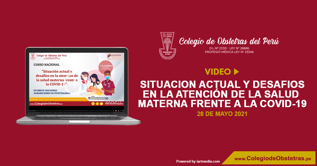 El Colegio de Obstetras del Perú te invita a participar en el curso "Situación actual y desafíos en la atención de la salud materna frente a la COVID-19". Zoom: https://bit.ly/3bMwpWD ID de reunión: 923 6889 9534 Contraseña: 115340 Recuerda que para acceder a zoom, debes renombrar tus datos con tu...