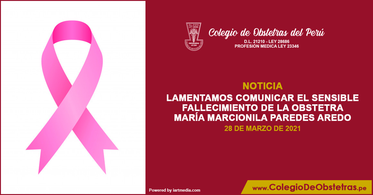 Lamentamos comunicar el sensible fallecimiento de la obstetra María Paredes Aredo