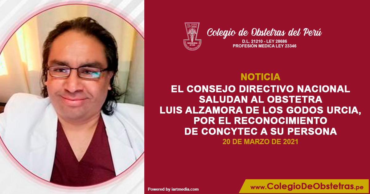 La decana nacional del COP, Margarita Pérez Silva, y el Consejo Directivo Nacional saludan al obstetra Luis Alzamora de los Godos Urcia, por el reconocimiento de Concytec a su persona, como investigador en la categoría "Carlos Monge Medrano" nivel III. ¡Felicitaciones, obstetra Luis! ¡Muchos éxitos!