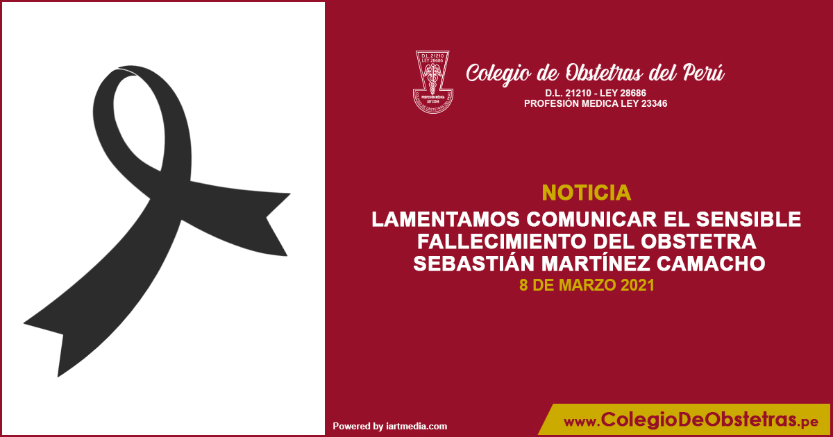 Lamentamos comunicar el sensible fallecimiento del obstetra Sebastián Martínez Camacho, víctima de la COVID-19, en Ayacucho. La decana nacional del COP, Margarita Pérez Silva, y el Consejo Nacional expresan sus sentidas condolencias a la familia, amigos y compañeros de trabajo. Descansa en paz, estimado Sebastián.