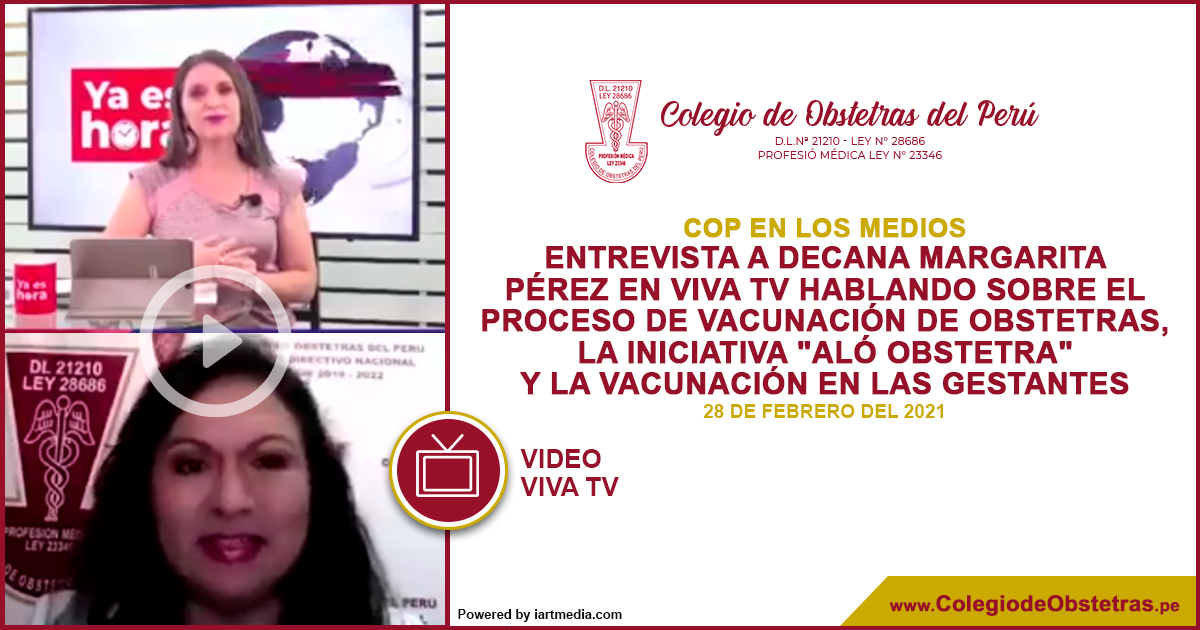 La decana nacional del COP, Margarita Pérez Silva, estuvo hoy en Viva TV hablando sobre el proceso de vacunación de obstetras, la iniciativa "Aló Obstetra" y la vacunación en las gestantes. Puedes ver la repetición, mañana lunes 8 p.m.: Canal 11 y 11.1 de señal abierta, canal 38 de...