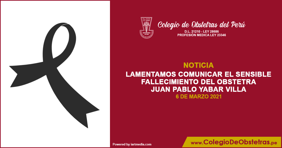 Lamentamos comunicar el sensible fallecimiento del obstetra Juan Pablo Yabar Villa, víctima de la COVID-19, en Cusco. La decana nacional del COP, Margarita Pérez Silva, y el Consejo Nacional expresan sus sentidas condolencias a la familia, amigos y compañeros de trabajo. Descansa en paz, estimado Juan.