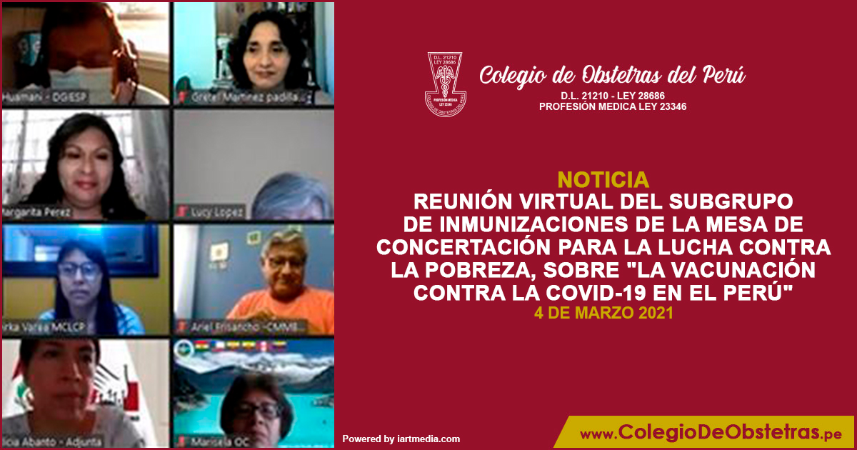 La decana nacional del COP, Margarita Pérez Silva, y la vicedecana, Gretel Martínez Padilla, participaron en la reunión virtual del Subgrupo de Inmunizaciones de la Mesa de Concertación para la Lucha Contra la Pobreza, sobre "La vacunación contra la COVID-19 en el Perú", realizado hoy a las 4 p.m. La...