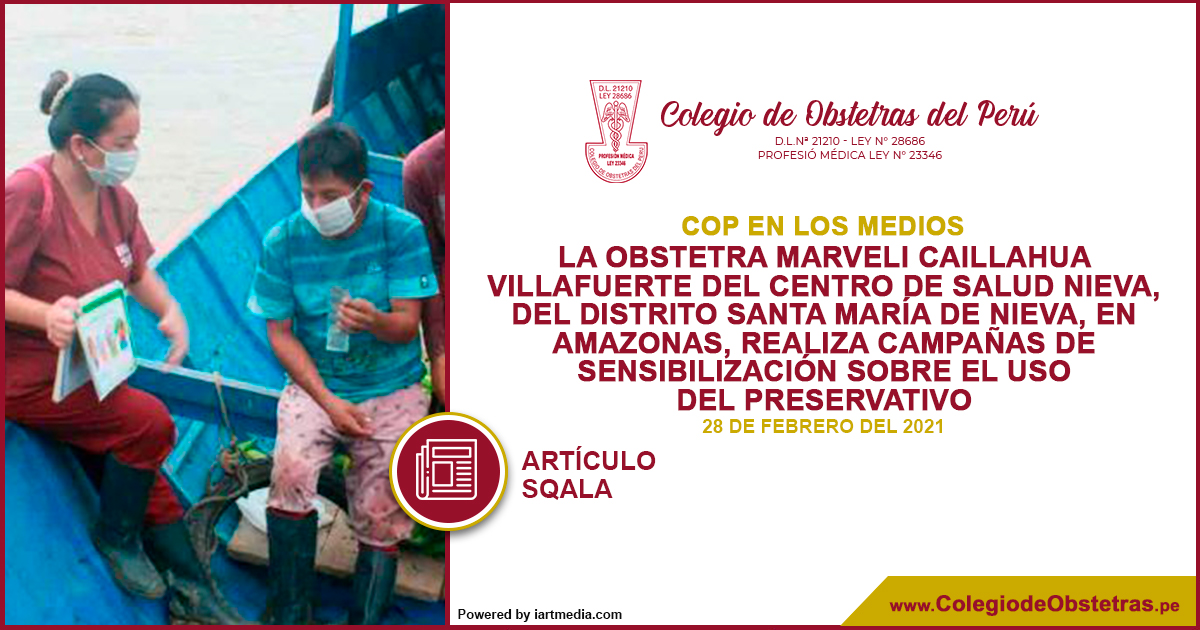 La obstetra Marveli Caillahua Villafuerte del centro de salud Nieva, del distrito Santa María de Nieva, en Amazonas, realiza campañas de sensibilización sobre el uso del preservativo. El Colegio de Obstetras del Perú resalta esta labor tan importante, que beneficia, principalmente, a la población más vulnerable. https://bit.ly/37R0ZMP