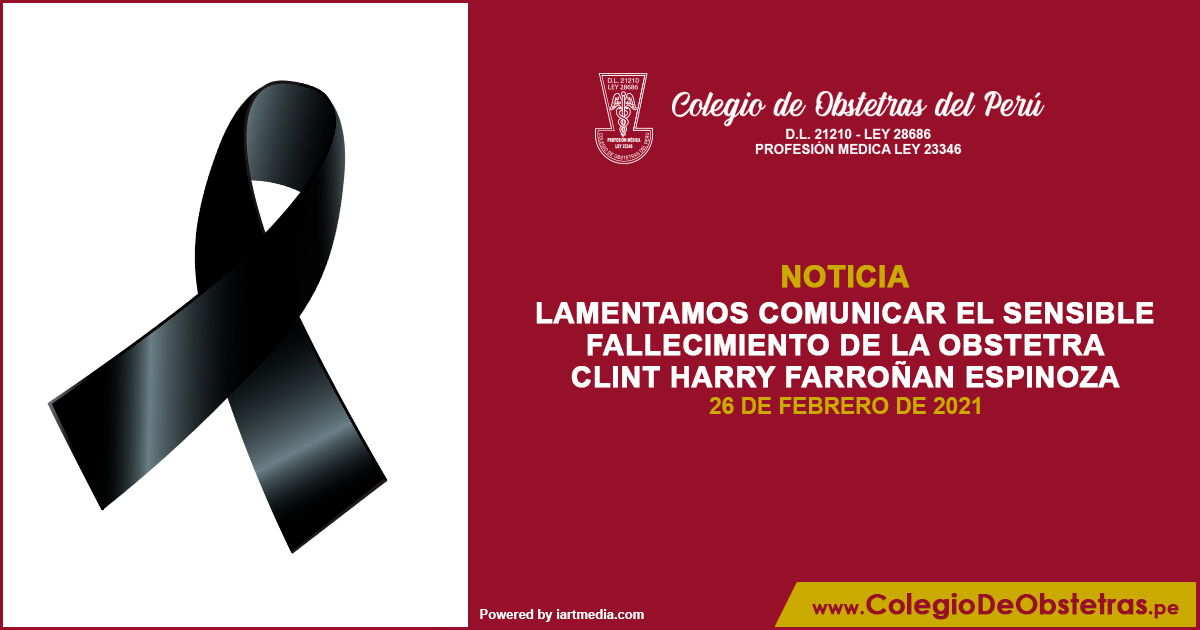 Lamentamos comunicar el fallecimiento del obstetra Clint Harry Farroñan Espinoza, quien brindaba sus servicios profesionales en la ciudad de Cajamarca. La decana nacional del COP, Margarita Pérez Silva, y el Consejo Nacional expresan sus sentidas condolencias a la familia, amigos y compañeros de trabajo. Descansa en paz, estimado Clint....