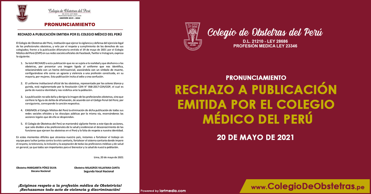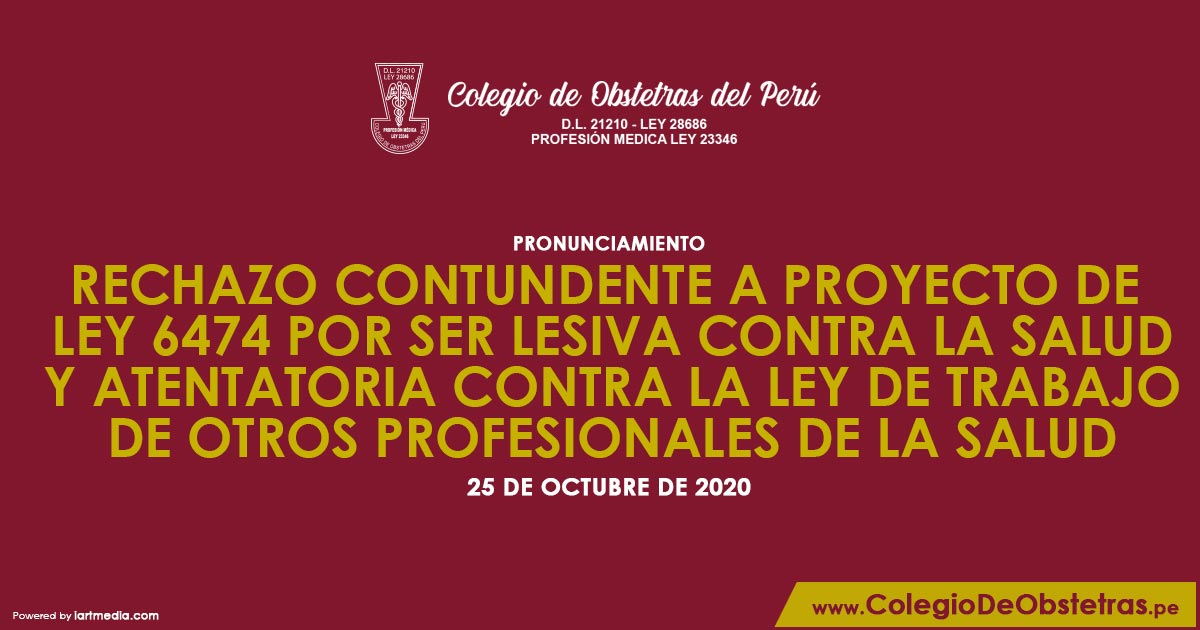 Al presidente de la República, presidente del Congreso, ministro de Salud, ministros de Estado, señores congresistas, Defensoría del Pueblo, obstetras de todo el Perú y público en general: El Colegio de Obstetras del Perú, en representación de 39 600 obstetras a nivel nacional, manifiesta su TOTAL RECHAZO a la...