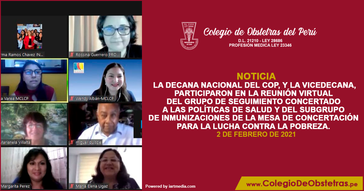 reunión virtual del Grupo de Seguimiento Concertado a las Políticas de Salud y del Subgrupo de Inmunizaciones de la Mesa de Concertación para la Lucha Contra la Pobreza