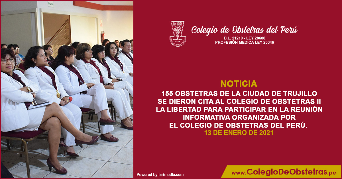 El 10 de enero, 155 obstetras de la ciudad de Trujillo se dieron cita al Colegio de Obstetras II La Libertad para participar en la Reunión Informativa organizada por el Colegio de Obstetras del Perú. La decana nacional del COP, Margarita Pérez Silva, dio a conocer los principales avances de...